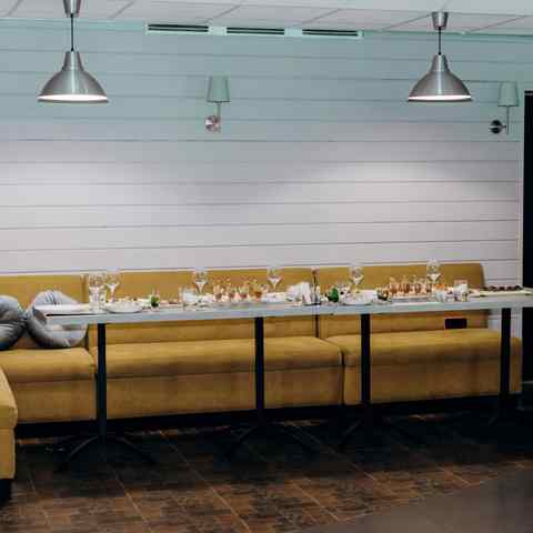 Команда заведения «Просто Вкусно» знает, как оформить зал под любой праздник, будь то детский день рождения или корпоратив. Комбинация светло-серого и горчичного цветов в интерьере символизирует изобилие и уверенность вкупе с элегантностью и интеллектуальностью.